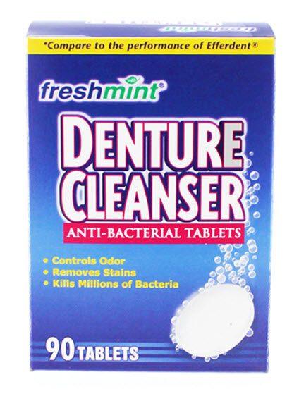 Keep your dentures clean and fresh with Freshmint Boxed Denture Cleanser Tablets. Each box contains 90 tablets designed to effectively clean dentures and kill odor-causing bacteria. Manufactured by New World Imports, these tablets are convenient and easy to use. Ideal for daily denture hygiene.